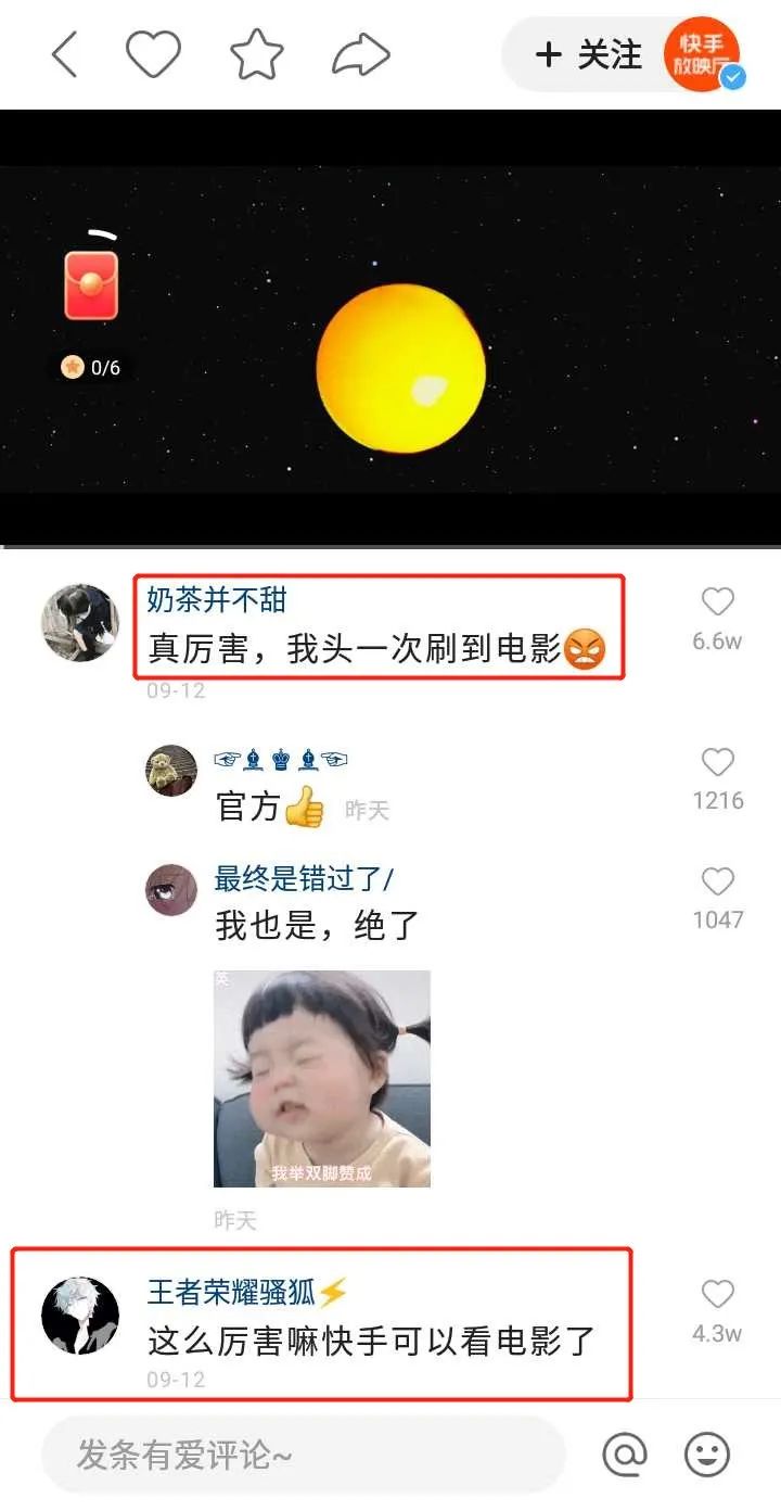 也因此,能夠明顯看出,今年春節以來,快手的進攻態勢正變得更猛。一方面引入明星、加速破圈;一方面升級產品、更新體驗。而此次引入電影版權,仍然可以看作是快手完善內容生態的重要一步。