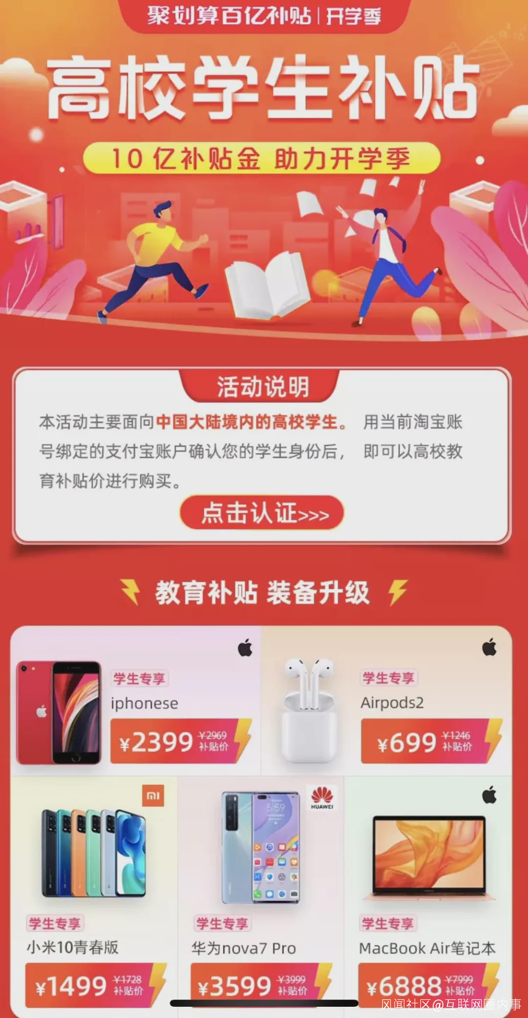 在前期,聚划算就針對高校學子,推出了高校學生補貼活動,iPhone 11原價5499元,補貼後僅需3888元,如此價格,甚至比618時各平台的最低價還要低,讓一眾高校學子直呼“瘋狂”。
