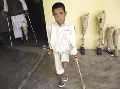 ▲被炸斷腿的當地兒童