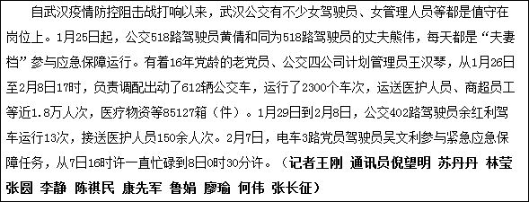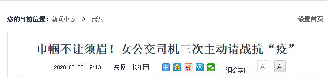早在2月8日,長江日報就報道了女公交司機主動請戰抗“疫”的故事。