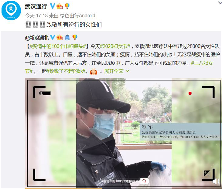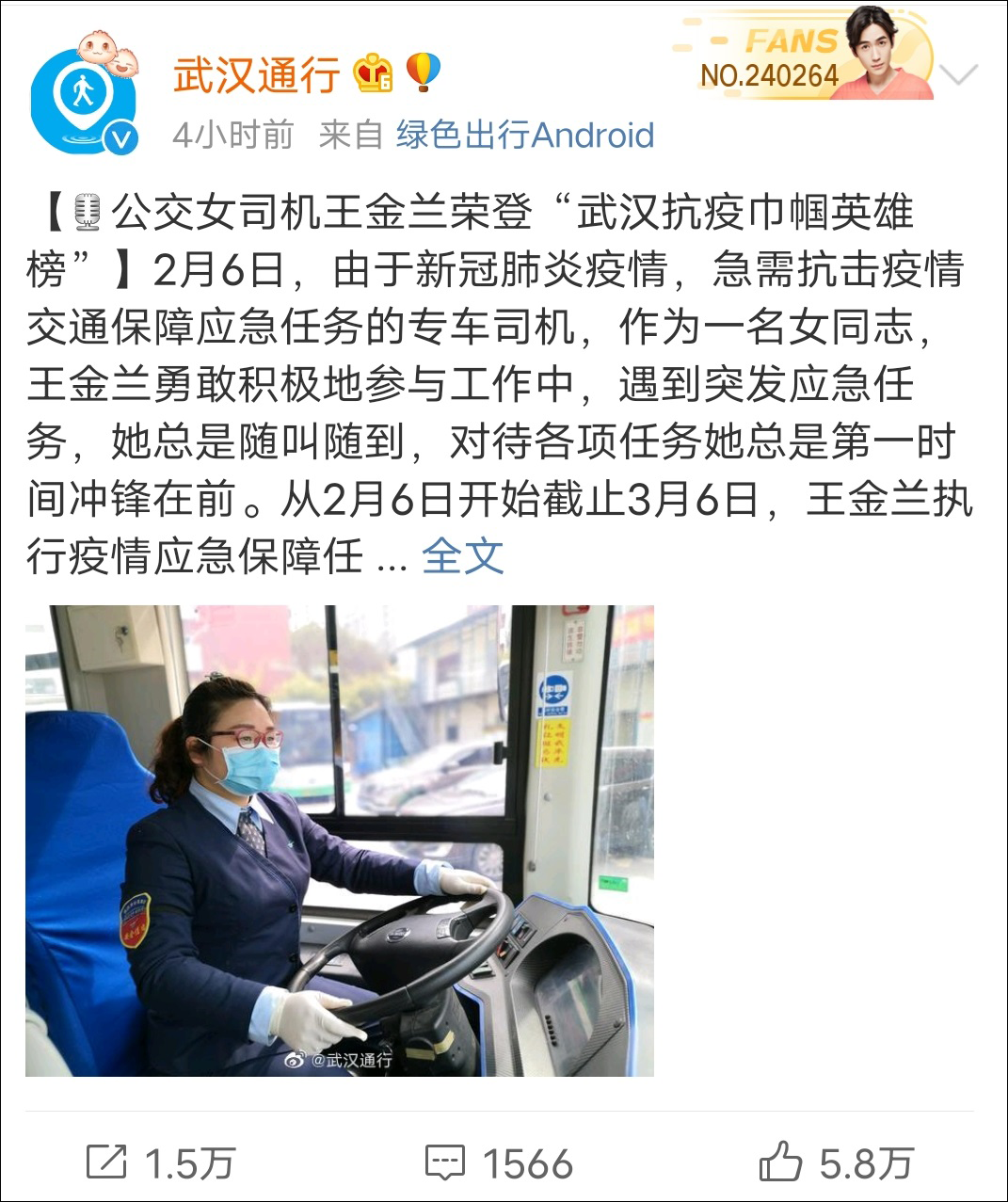 更有女司機榮登“武漢抗疫巾幗英雄榜”。