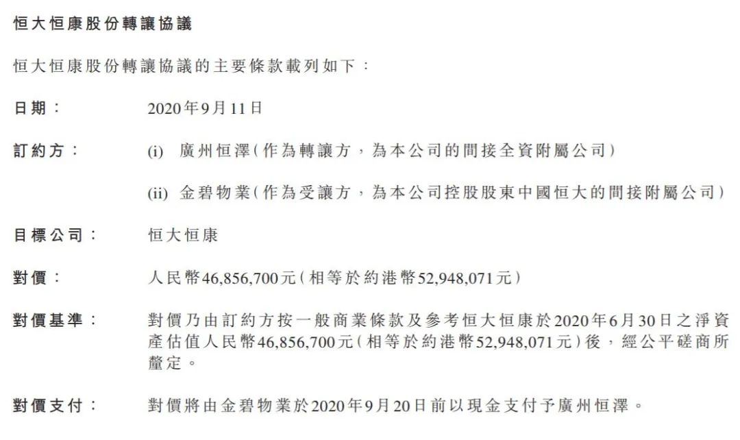 在這之前,恒大汽車還發布公告稱擬向金碧物業出售兩家附屬公司的全部股權,其中,廣州恆澤對價為4685.67萬元,嘉麗澤旅遊對價為68.44萬元,總對價為4754.11萬元。