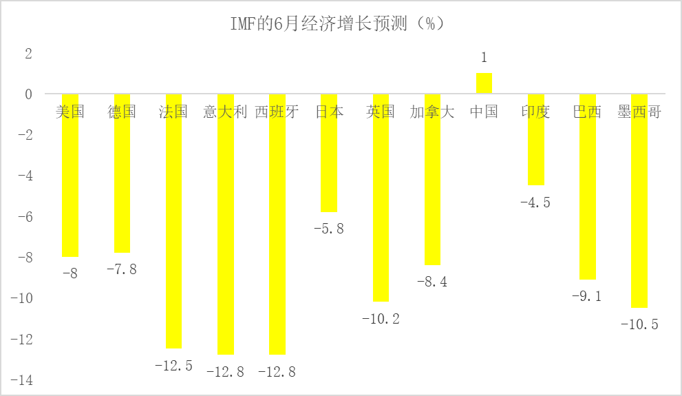 但到了6月份,疫情沒有像特朗普説的那樣“突然消失”,夏天也沒有阻擋住疫情傳播的步伐,世界經濟仍然在疫情中泥足深陷,IMF進一步調低了對各國的經濟增長預期預期。