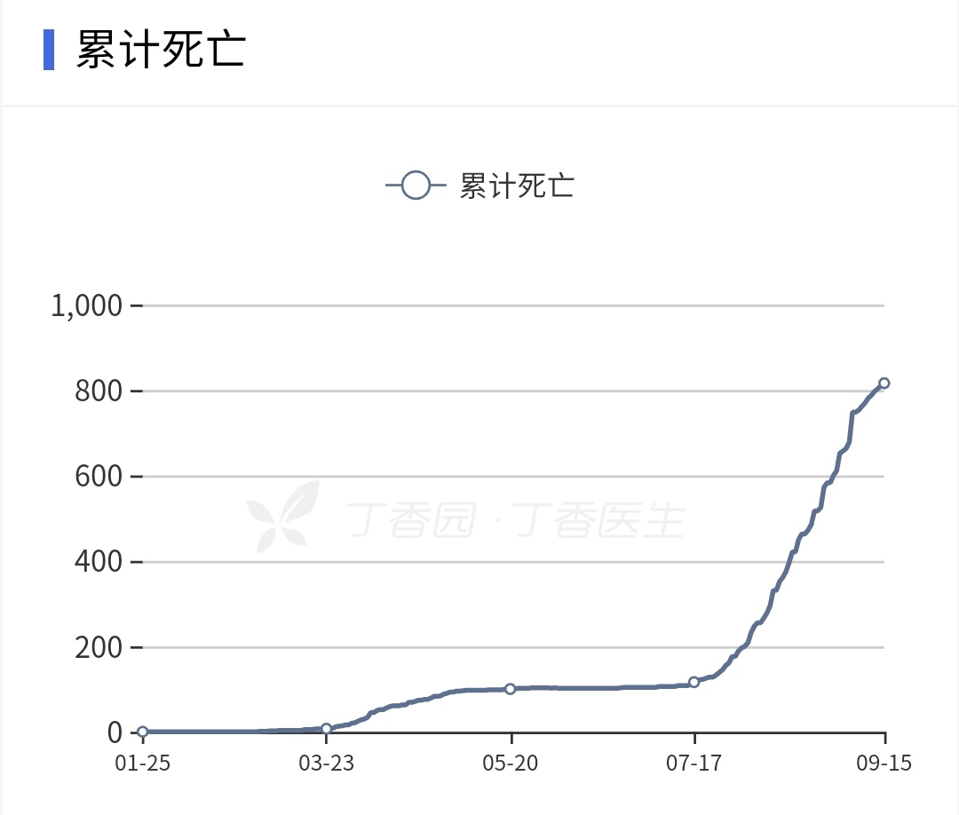 **☉**澳大利亞新冠累計死亡人數 數據來源:丁香醫生