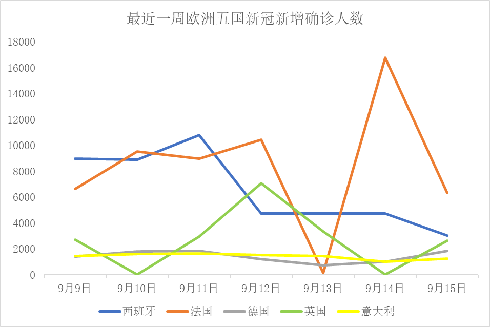 西歐的五個主要國家西班牙、法國、英國、德國、意大利,在最近一週裏控制得好的每天新增一千多人確診,控制得不好的有個別日期確診人數超過一萬例……