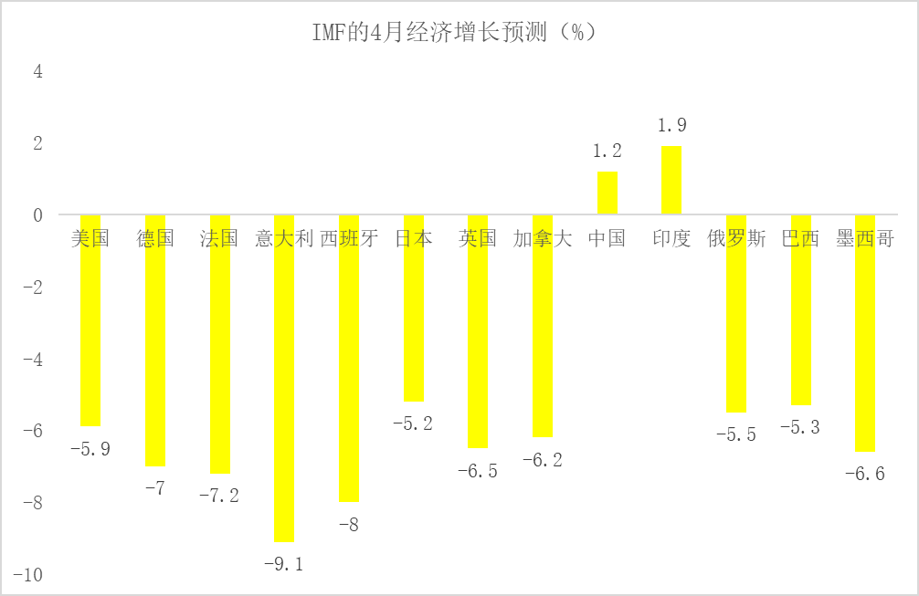 尤其是印度新冠疫情爆發越發嚴重,IMF對印度的增長預期也被調整成了負增長。被IMF認為經濟會正增長的主要經濟體只剩下了早就壓制疫情的中國。