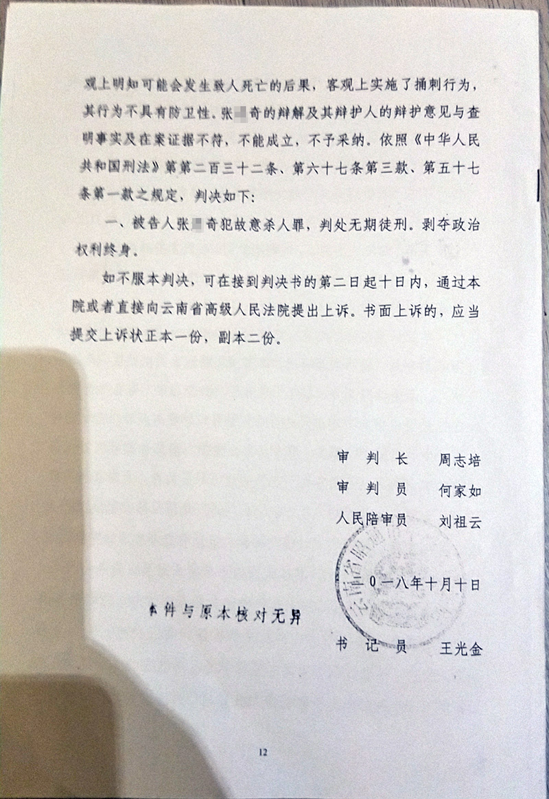 最終,該院判決張某奇犯故意殺人罪,判處無期徒刑,剝奪政治權利終身。