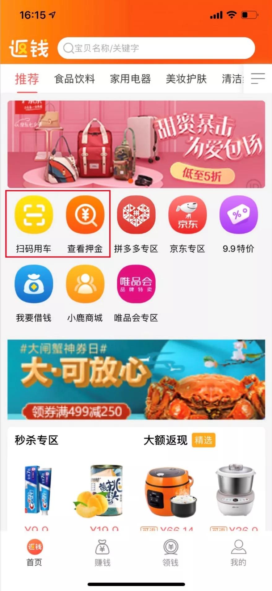 “全網返利,購物省錢。”再次重啓ofo APP時,柒財經發現,平台變為購物網站導流平台。據悉,這是ofo為退還押金在去年底推出的新招。