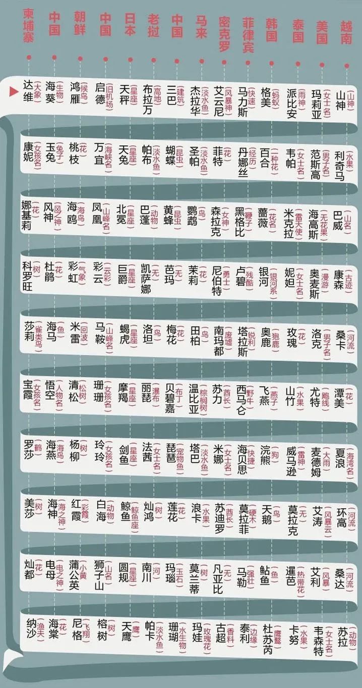 中國大陸貢獻的名字“國****風”十足,比如玉兔、風神、海神、悟空、電母、海棠、杜鵑。