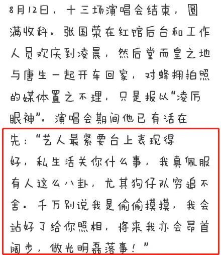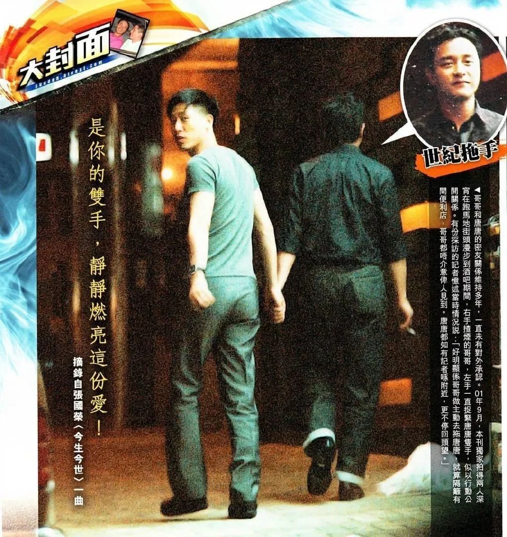 張國榮在接受採訪時説,大晚上跟着我們有什麼意思呢,沒什麼給狗仔拍的,乾脆拖手給你拍咯。