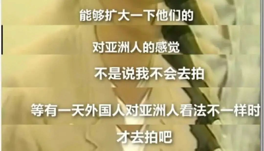 當然,他的意思不是排外,而是要等到外國人對亞洲人的印象改觀再去拍。