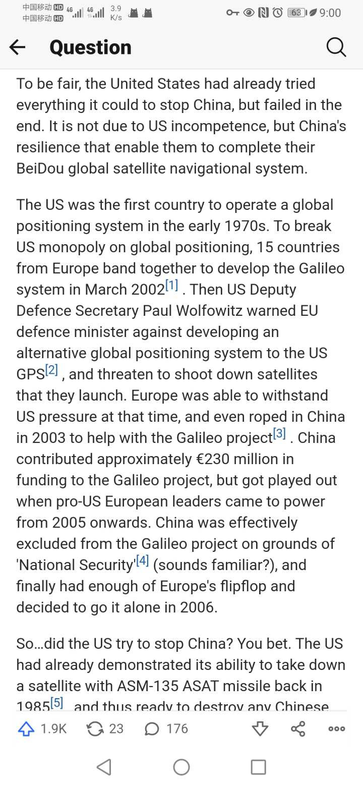 哥們,公平的説,美國已經做了所有的努力去阻止中國,但是failed,失敗了,通通失敗了。失敗的原因也不是美國無能不努力,而是中國太韌性,太能幹,太聰明,太能鑽研,因此他們才能夠完成全球北斗衞星導航系統。