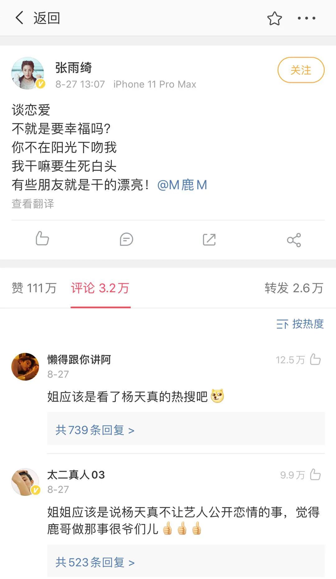 “小雨你好剛啊!”(都三年了,好鋼都生鏽了)“姐是在支持鹿晗公開戀情吧”(語文閲讀理解高手了)“姐,不愧是你”(不愧是誰都可碰瓷的你)剛在《乘風破浪的姐姐》裏靠心直口快人設翻身的張雨綺,又化身為娛樂圈的敢愛紅娘。
