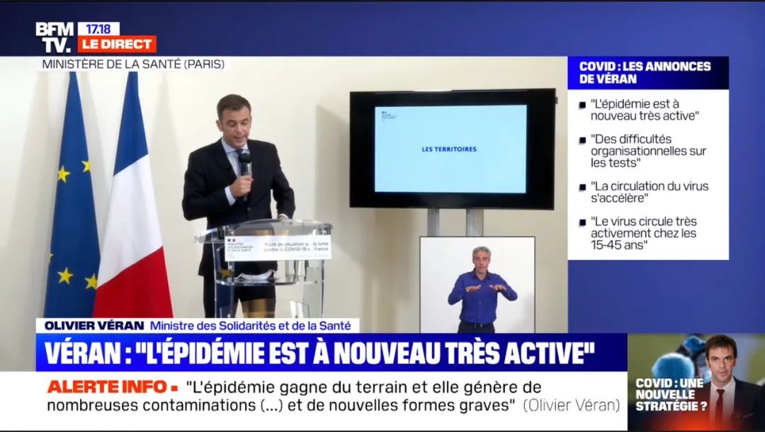 今日下午,衞生部長 Olivier Véran 公佈了法國針對疫情將採取的新的政策措施,這些措施由昨日法國政府開會討論決定。