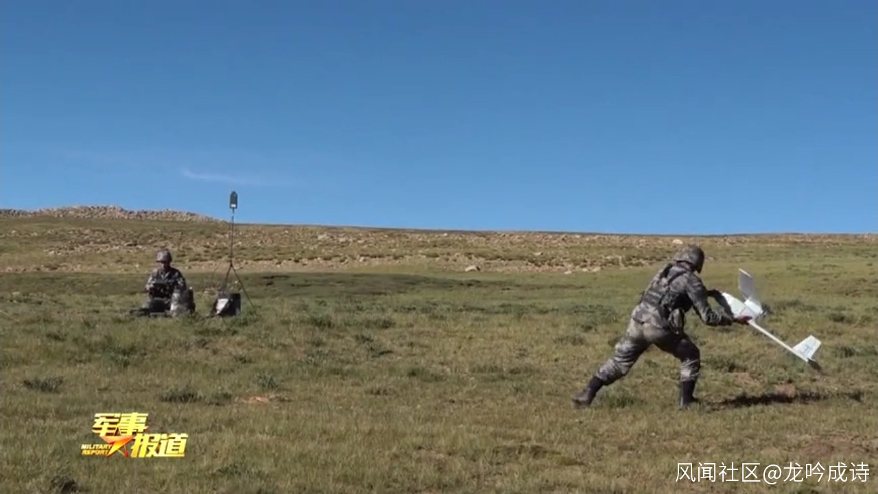 △由兩個人組成的一個無人機偵察小組,一個負責架天線扶天線(高原風大,這樣高重心的架子必須有人扶住),另一個放飛兼遙控。