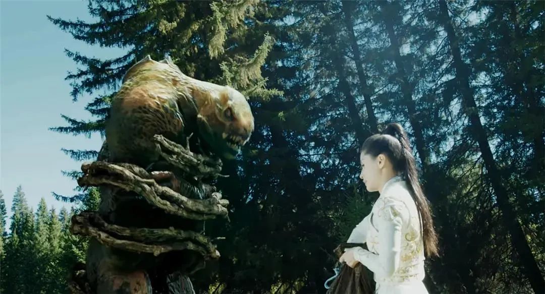 之所以積壓,是因為天悦東方創始人林正豪決定用兩年時間來做特效,他曾在採訪中表示,自己對《太古神王》的畫面要求是“業內標杆”。兩年時間、兩億投資,最終的成品卻不是觀眾想象中的東方奇幻,而是東西方審美雜糅下的四不像視效。從《太古神王》的怪獸、建築、大場面景觀裏,你可以看到好萊塢災難片和科幻片的影子,可以看到西方中世紀的審美,但唯獨缺少純正的東方仙俠韻味。