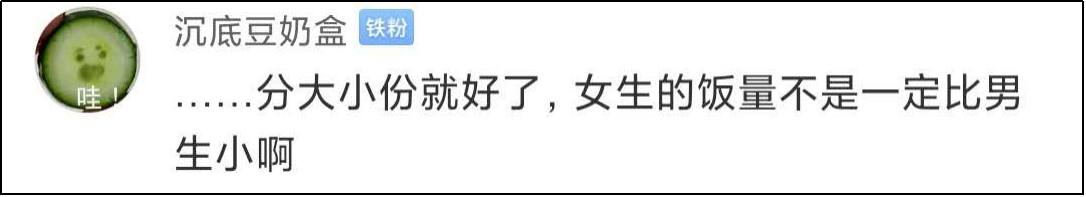 該負責人的解釋,也讓許多網友不滿——節約糧食可以理解,但這和男女生有啥關係?