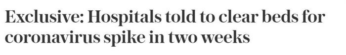 據《每日電訊報》報道, NHS已要求各醫院和地方政府在兩週內為新冠患者增設牀位,以應對可能出現的大量入院病例。