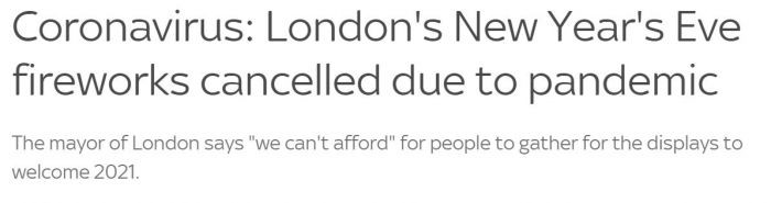 另據天空新聞的報道,倫敦市長薩迪克·汗今早在參加LBC的廣播節目時表示,倫敦2021年的跨年煙花表演將暫停,因為“我們無法應對”人們像往常那樣的聚集。但他補充説:“我們正在努力做的是讓人們可以在舒適、安全的客廳裏看電視節目。”