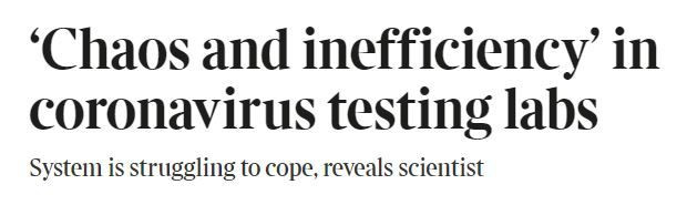據《泰晤士報》報道,本來NHS醫院的新冠檢測由各醫院單獨進行,現在又突然要求燈塔實驗室承擔這些額外的工作量。此前燈塔實驗室未能與NHS的實驗室保持聯繫,在承擔額外工作量後,使得本來就忙碌的技術人員沒有足夠的時間來獲取實驗裝備、進行輪值和安排樣品的運送。