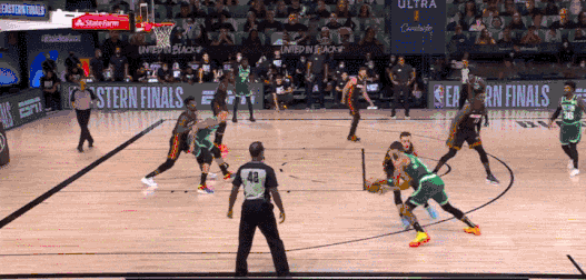 但這時不管是塔圖姆、布朗,還是斯瑪特,到低位持球背打都是有優勢的,所以今天三人都有低位背身單打的得分入賬。