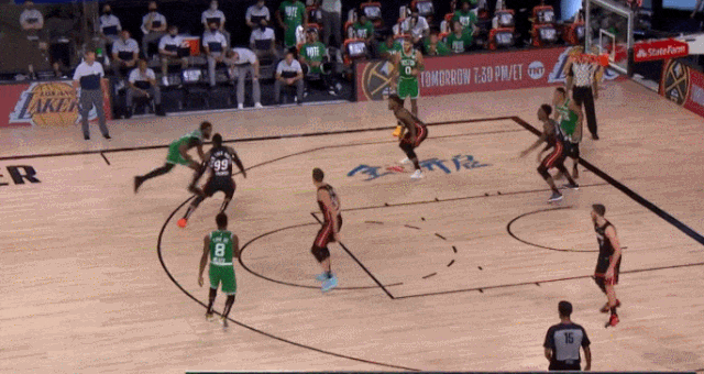 下半場熱火守聯防的時候,布朗、塔圖姆和斯瑪特都從外線持球直接殺入禁區挑戰過阿德巴約,而且都打進了。當然熱火上線的防守沒能鎖死綠軍的突破也是一方面的問題,但他們心裏或許想的是內線還有阿德巴約,而此時阿德巴約可能已經累得想罵娘了。