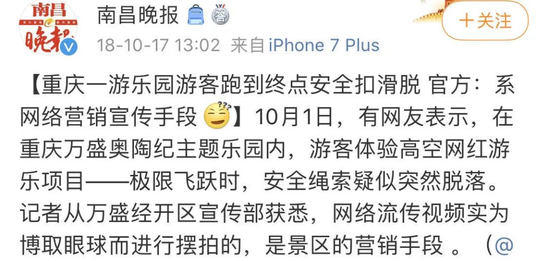 19年,懸崖鞦韆鋼絲繩斷裂一次