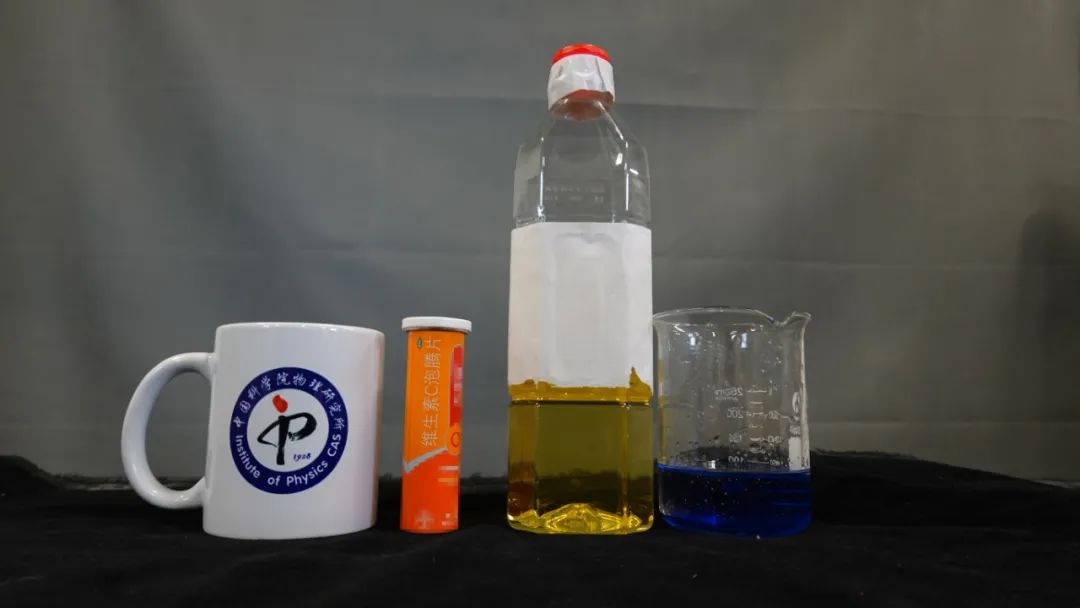 所標杯、透明燒杯、泡騰片、油、水(可加色素)