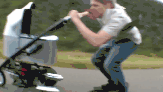 嬰兒車的外表被換成了鐵皮,摩托車的也安裝了發動機,加上油門和剎車,再給自己弄個腳踏板。