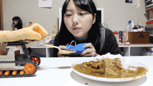 即便是加班,也要學會享受生活,為了讓自己的生活看起來更加精緻,藤原發明瞭自動餵飯機。