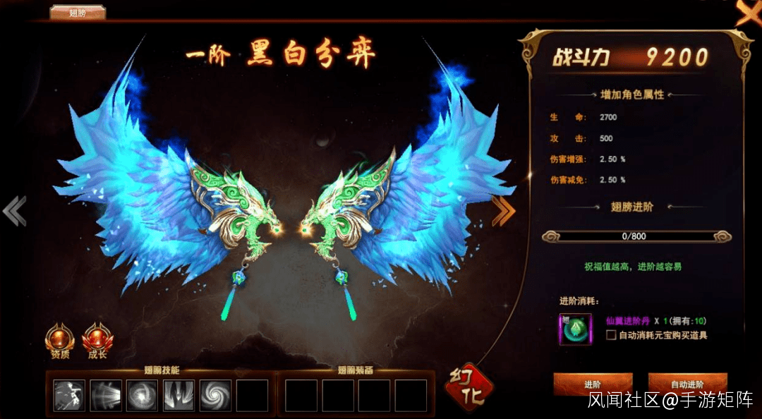 除了翅膀變得不再稀有之外,在戰力的數值上更是一往無前,一個翅膀加上萬的戰力都算是非常剋制的,戰力千萬過億的高階大翅膀也成為了後來頁遊的主流模式。