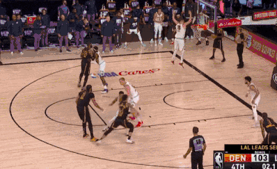 比賽打到這個時候,我腦海中第一時間浮現的就是複賽之後的8月11日,湖人和掘金那場由庫茲馬三分絕殺的比賽。