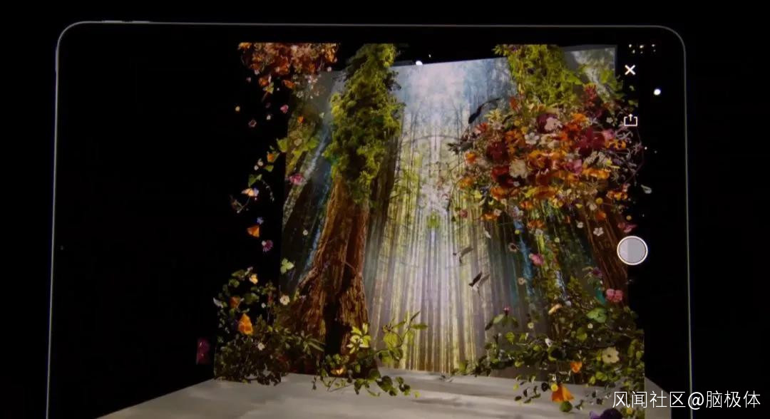 蘋果在終端本地大幅提升神經引擎的運算能力,以及配合圖形計算引擎和AI加速等功能,可以在移動終端中執行非常高難度的機器學習任務。比如在iPad Pro上,通過神經引擎的計算能力,結合Project Aero 軟件,iPad Pro 能將 PSD 中創作的每一個圖層以獨立的 AR 對象呈現在屏幕上,每個圖層都分離成一幕栩栩如生的景觀,這對創作者來説相當具有吸引力。