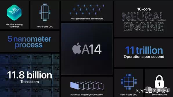 這次發佈的A14處理器芯片上,神經引擎核心數再次翻倍達到16個,每秒運算次數達到了驚人的11.8萬億次,機器學習速度提升了70%,機器學習加速器則令運算速度快達10倍,將各種機器學習應用的性能表現再次大幅提升。