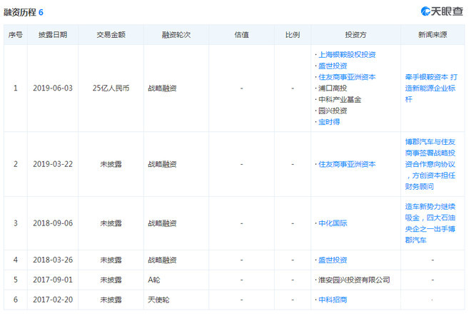 天眼查顯示,博郡成立於2016年,先後完成6輪融資,但同樣深陷資金困局,距離量產遙遙無期。數據顯示,截至2018年末,南京博郡總資產約5.5億元,淨資產為5700萬元;2018年營收5700萬元,淨利潤為虧損4.79億元。對於此時的博郡而言,難以償還一汽夏利的債務。