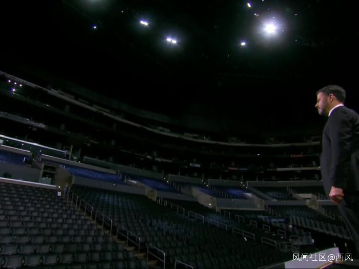 一開場,主持人吉米·坎摩爾(Jimmy Kimmel)出現在舞台上自如地跟大家打招呼,畫面轉到台下,現場人滿為患,還沒一個人戴口罩。
