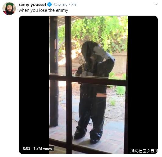 提名了喜劇類最佳男演員的拉米·尤素夫(《拉米》)發視頻透露,沒有獲獎,一襲黑色防護服的工作人員打個招呼瀟灑跑了,跑了……