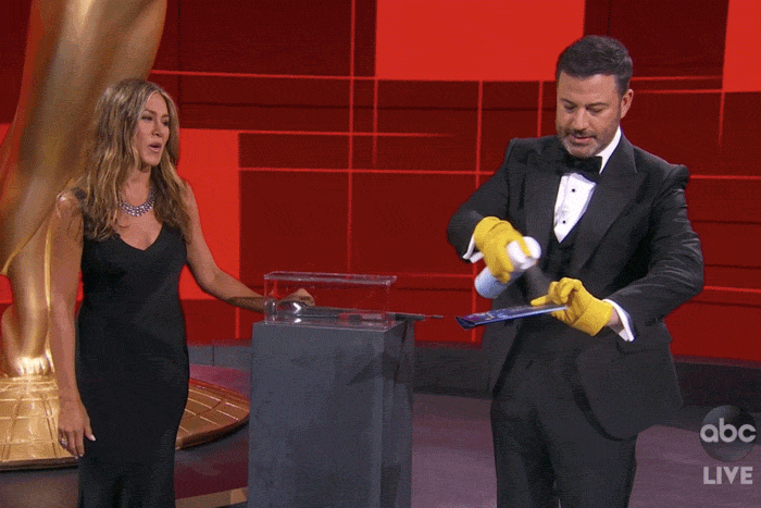 典禮開始後,主持人和嘉賓詹妮弗·安妮斯頓在舞台上原本想要為開獎信封“消毒”;