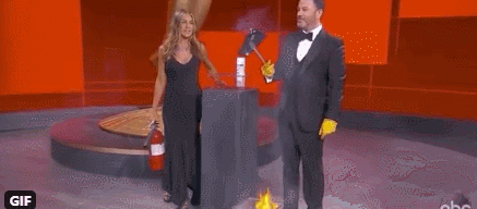 結果還不小心給引燃了,頒獎典禮瞬間變成救火現場,詹妮弗拿起旁邊的滅火器,緊急滅火;