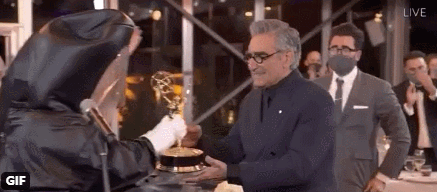 艾美獎改線上舉辦,主辦方給每個提名者派了個手持獎盃的工作人員_風聞