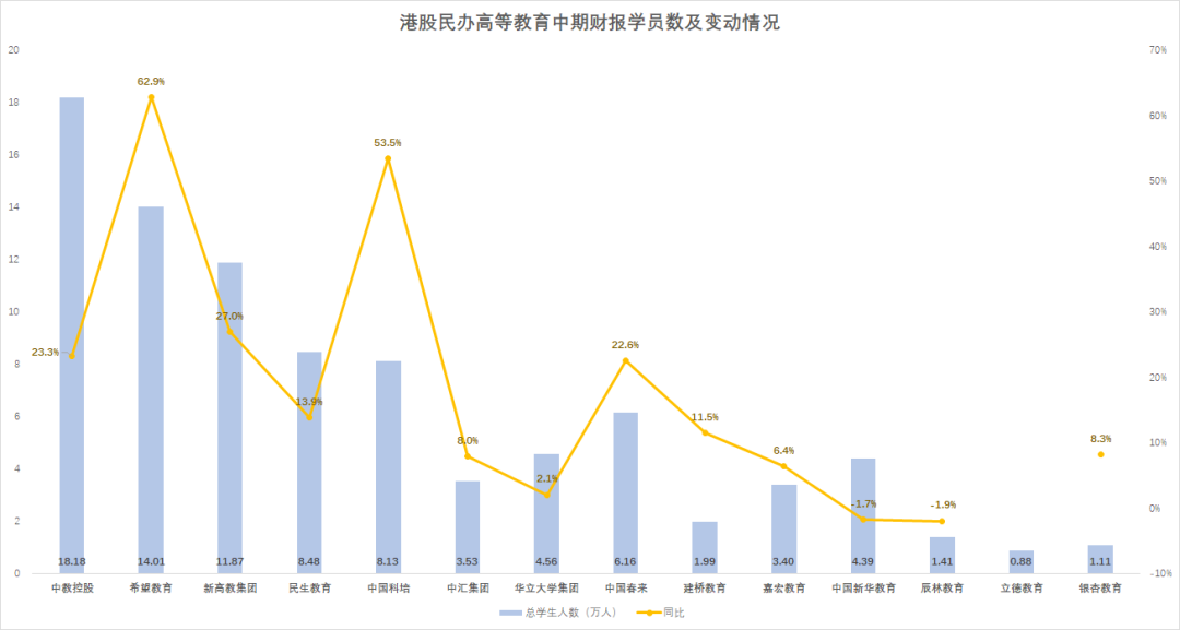 縱觀企業半年報,無論是只受到一個季度影響,還是整個半年都受到衝擊,大多數機構都呈現不錯的發展狀態。高等院校保持平穩運行,對行業是一種提振。而具體到各家上市公司,馬太效應凸顯——尾部機構抵抗衝擊的能力相對較弱,而頭部機構則保持快速增長。高等院校這一發展多年的賽道,對底藴、經營有着明顯門檻,市場格局已經相對牢固。