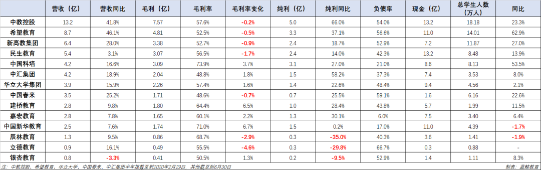 藍鯨教育選取了14家較典型的民辦高等教育機構,通過梳理它們上半年的業績,嘗試勾勒出疫情下民辦高等教育賽道的發展狀態。