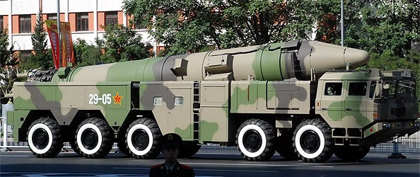 DF-21是“巨浪上岸”的結果。中國以60年代研發的“巨浪”潛射彈道導彈為基礎,研發了具有公路機動發射能力的DF-21中程彈道導彈。這原本是核導彈,但2000年後中國研發了常規彈頭、具有GPS中繼彈道修正和雷達末端校正的新一代DF-21C,在外觀上與核彈頭的DF-21系列無法區別。中國對各種彈道導彈的數量是保密的,外界對常規彈頭的DF-21C的確切數量始終不清楚。