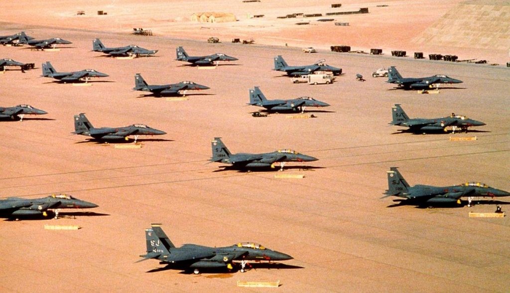 要是戰時不顧安全而密集進駐,戰鬥機只能露天停放,必將招到中國導彈的打擊,上為“沙漠風暴”作戰期間沙特的達赫蘭空軍基地,下為韓國的羣山空軍基地
