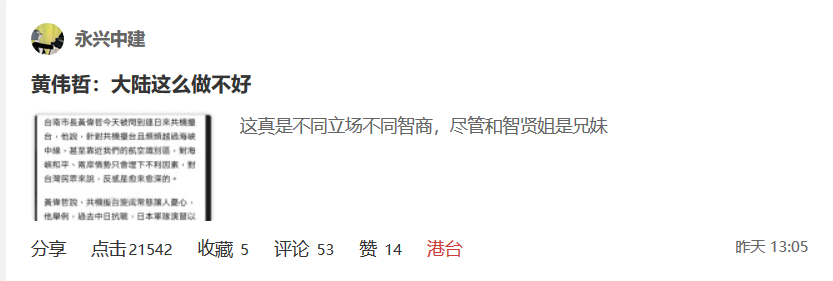 傳送門: 黃偉哲:大陸這麼做不好 評論 57 港台