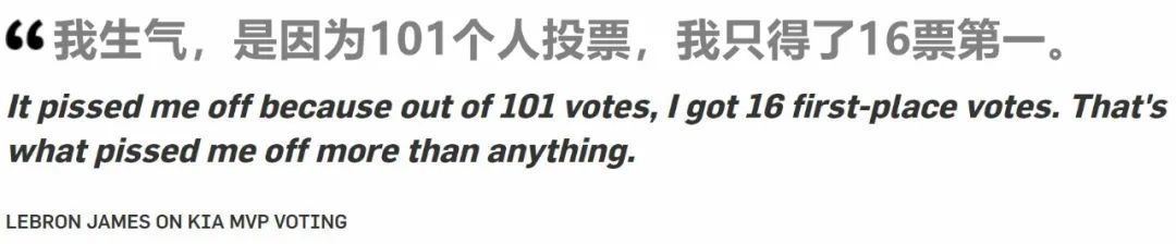 詹姆斯很生氣,他説101張選票裏面,居然只有16票把他放在第一位。