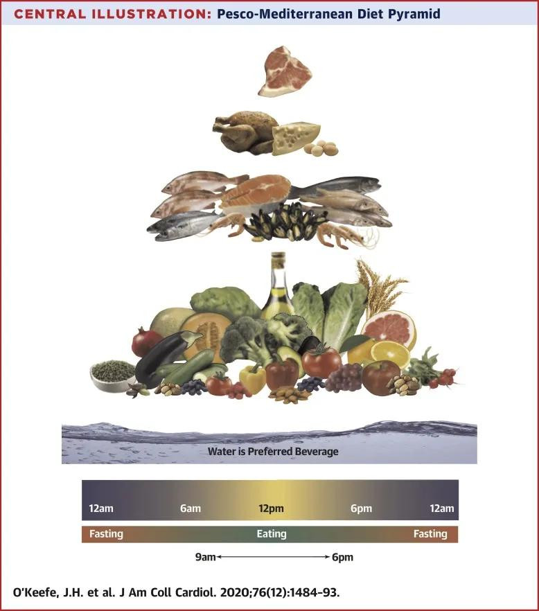 1. James H. O’Keefe, Noel Torres-Acosta, Evan L. O’Keefe, Ibrahim M. Saeed, Carl J. Lavie, Sarah E. Smith, Emilio Ros, A Pesco-Mediterranean Diet With Intermittent Fasting: JACC Review Topic of the Week,