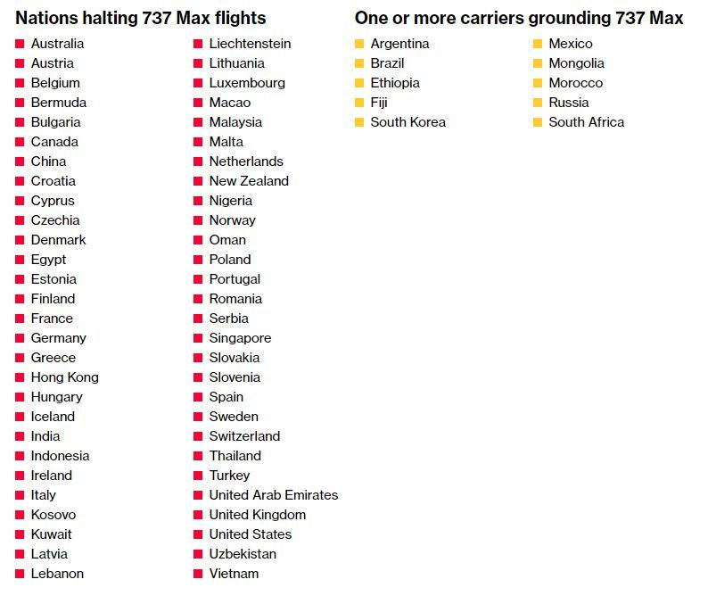 空難發生後,為了安全起見,大部分國家都暫停了737 MAX的航班。
