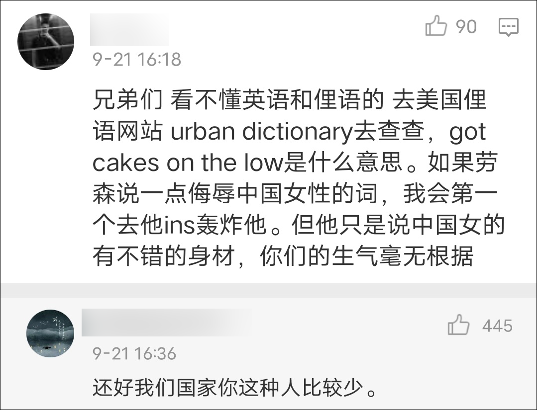 值得注意的是,在國外社交媒體上,不少外國網民力挺勞森,並對中國人進行了污衊和攻擊。有人甚至造謠稱,是中國男性造成了有史以來最大的疫情,而這類的攻擊卻收穫了不少“點贊”。
