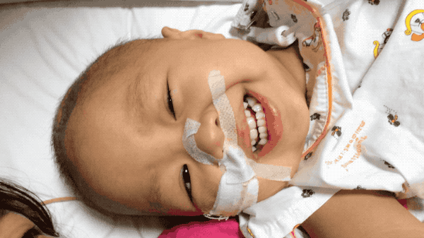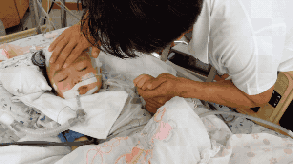 接下來的近一年裏,Einz經歷了12場手術、20次化療,失去了80%的左腦,基本等同於80%的右半身癱瘓。在Einz身上,生的希望和巨大的痛苦同時存在,每當她眼神裏流露出生的希望,咧開嘴巴朝父母笑時,他們無論如何也接受不了女兒即將離開的事實。